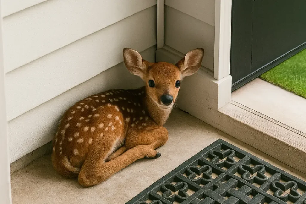 Hoje, ao abrir a porta de casa, me deparei com um filhote de veado — um bebê. Ele estava ali, sozinho, deitado na grama, quietinho. Num primeiro momento, senti um aperto no peito. Onde estaria sua mãe? Teria sido abandonado?